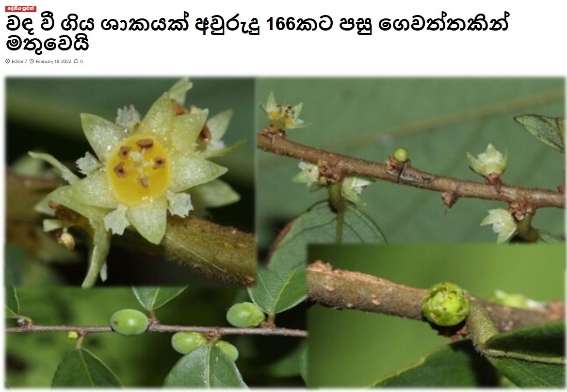කෑල විශේෂයට අයත් Bridelia stipularis-Phyllanthaceae (වැල් කෑල) ශාකය අවුරුදු 166කට පසු කෑගල්ලේ ගෙවත්තකින් සොයාගෙන තිබේ. මේ ශාකය තහවුරු කර ගැනීම වෙනුවෙන් පේරාදෙණිය උද්භිද උද්යාන ජාතික ශාකාගාරයේ හිටපු නිලධාරියෙකු මෙන්ම පැළෑටි විශේෂ පිළිබඳ පර්යේෂකයෙකු වන භාතිය ගොපල්ලව මහතා මෙන්ම, ශාක පිළිබඳ විශේෂඥයන් වන හිමේෂ් දිල්රුවන් ජයසිංහ හා ප්රදීප් රාජතේවා යන මහත්වරුන් දායක වී තිබේ.